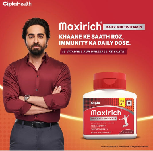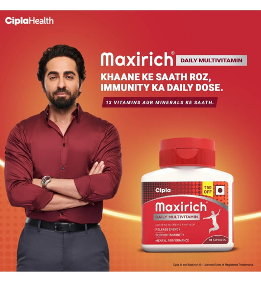 Cipla Maxirich Multivitamin Capsules with Nutrients, Antioxidants, Vitamins| Immunity 2x 30cap