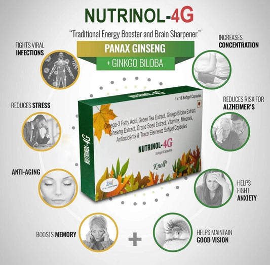 Knoll Nutrinol-4G For Healthy Heart,Body, Energy Booster & Brain Sharpner Softgels