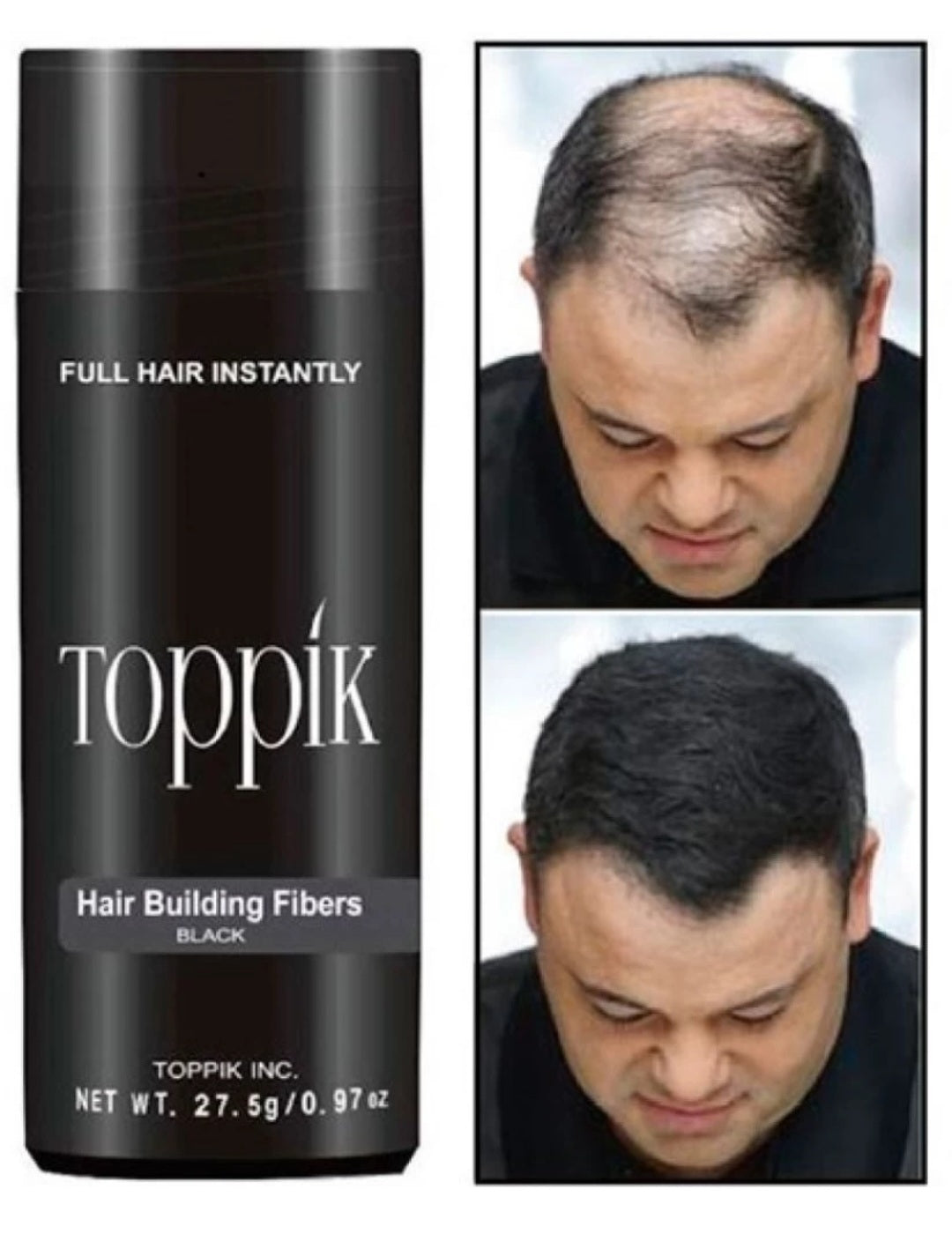 Toppik gives the instant appearance of a thick, full head of hair. Toppik Hair Building Fibers are made from natural Keratin of the highest grade, the same type of protein found in real hair, which makes it look completely natural and undetectable. These natural Keratin fibers have an innate static charge that ensures they adhere to any type of hair—even the finest of hair—and resist wind, rain and perspiration.