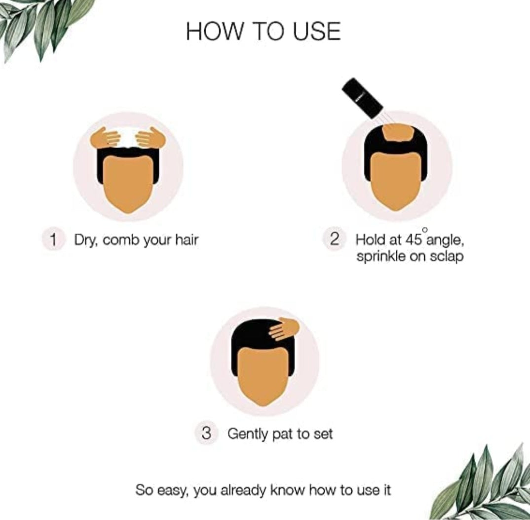 1. Dry and style hair as usual. 2. Shake or spray (with Toppik Spray Applicator) Hair Fibers into thinning areas. 3. If applying Hair Fibers near the hairline, use Toppik Hairline Optimizer to achieve a natural-looking front hairline. 4. Gently pat hair to disperse Hair Fibers. 5. If desired, lightly comb, brush, or style your hair after applying Hair Fibers. 6. For best results, use Toppik Fiber Hold Spray to finish for longer-lasting results.